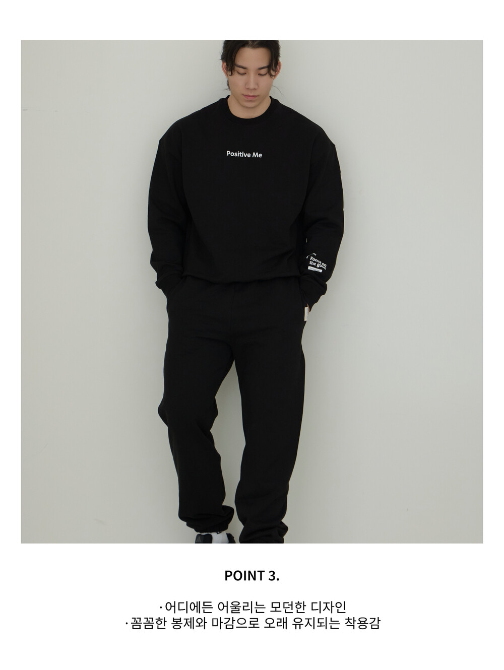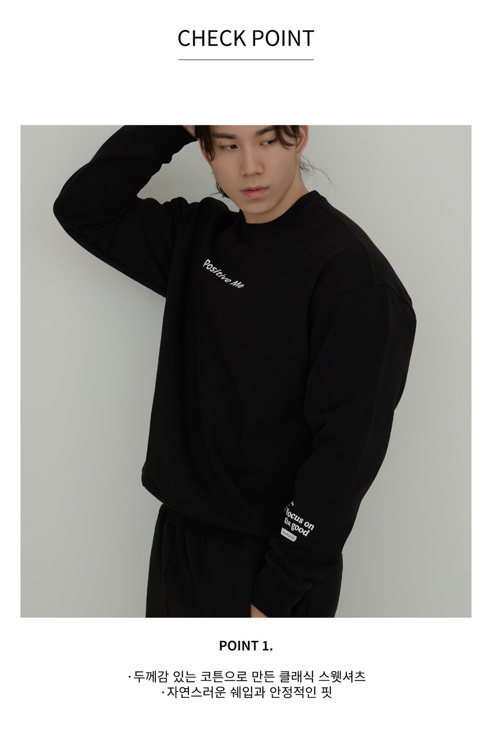 - 포지티브미 로고 포인트가 돋보이는 스웻셔츠
