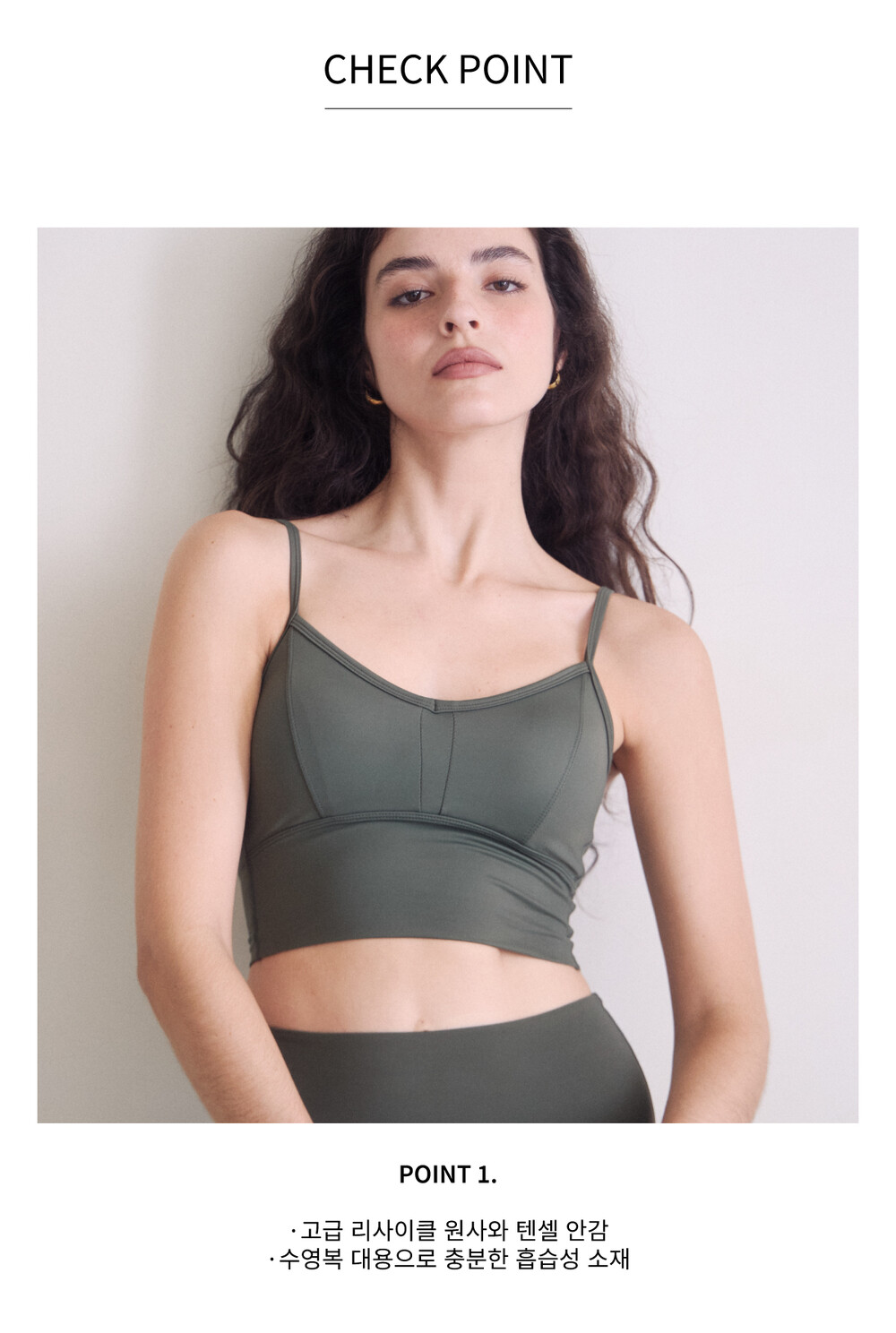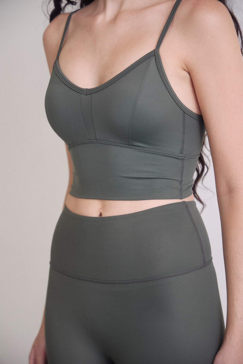 요가 크롭 브라 카키